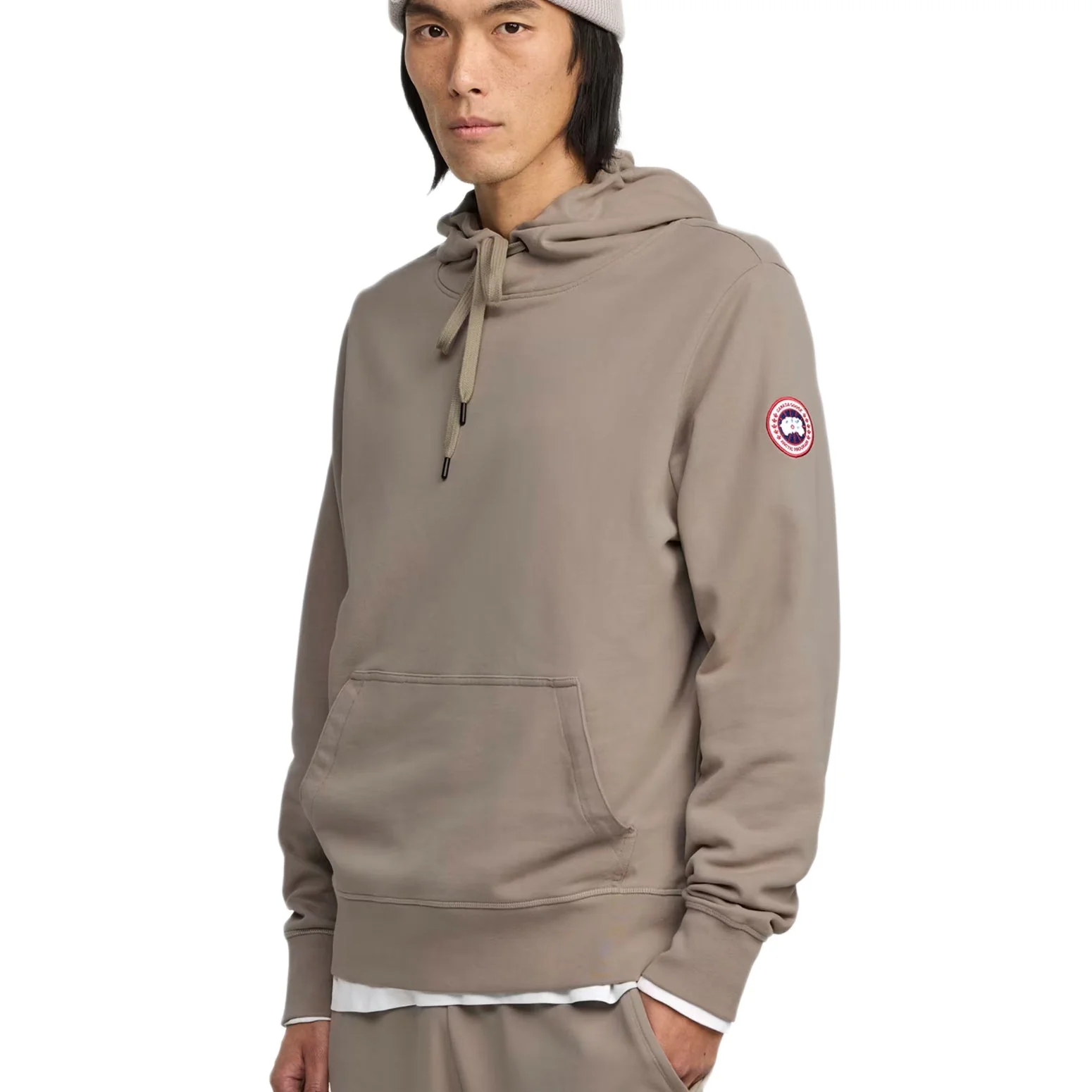 The Canada Goose Huron Hoodie is expertly crafted from 100% cotton, offering superior breathability and comfort. It features an adjustable hood with exterior drawcords for a customized fit, alongside rib-knit hem and cuffs that provide durability and shape retention. The practical exterior kangaroo pocket adds convenient storage, making this hoodie a functional and comfortable choice for everyday wear.