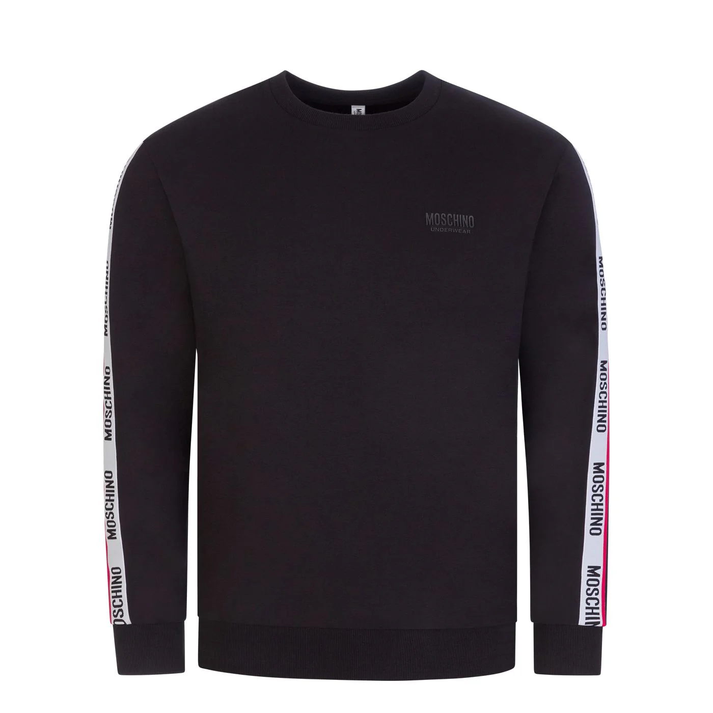 - Crew neck sweater with Moschino brand tape detailing to arms