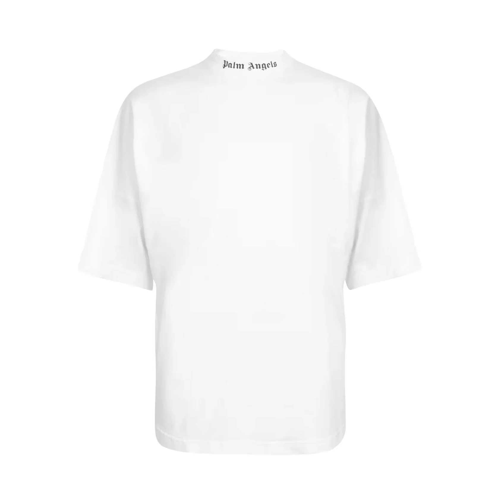 This Palm Angels classic Logo Over T-Shirt Crafted from a lightweight cotton material, this essential T-shirt features short sleeves, a ribbed crew neckline, an oversized fit, and elasticated trims for a comfortable fit. The solid colour scheme is accented with the iconic Palm Angels logo on the collar and back, making it perfect for everyday style.